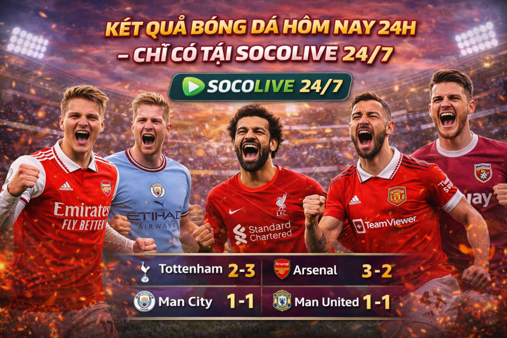 👉 Truy cập SOCOLIVE mỗi ngày để theo dõi kết quả bóng đá hôm nay 24h, cập nhật nhanh – chính xác – tiện lợi ⚽🔥